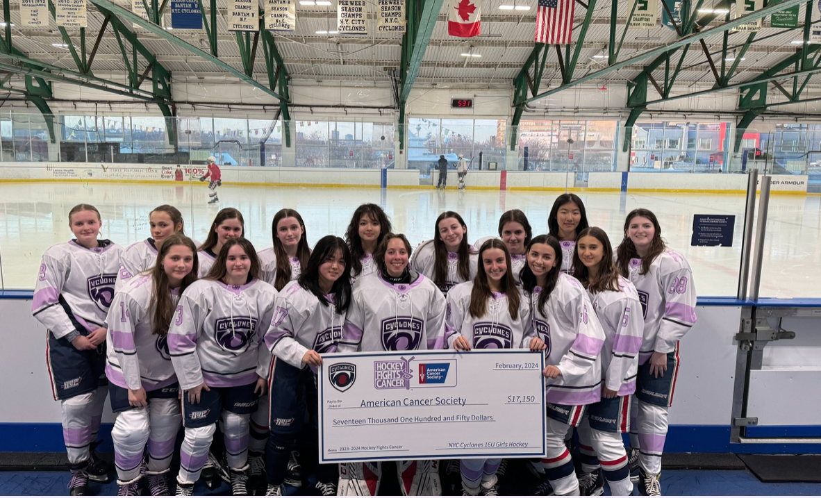 The Cyclones involvement with Hockey Fights Cancer dates back several years when the girls started talking about putting pink tape on their sticks for breast cancer awareness month. Eventually with the support of their coaches they decided to expand their efforts to focus on all forms of the disease.